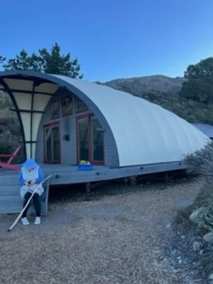 Jan and I are home now, back to our steady routines but I have to say that our trip to the south shore of Big Sur was a wonderful adventure. It’s a long drive up and around the coastal range to go in the south end. We have to do this because the road is still closed from the north because of last years big winter storm. We stayed at a lodge called Treebones which was wonderful. We stayed in a beautiful structure called an autonomous tent which sat perched on a bluff above the sea. The view toook in about 180 degrees of rough ocean sea scape. At night we could hear sealions hauled out on a beach somewhere three hundred feet below us. While the structure did have a fabric skin it was not any type of temporary immovable structure. It was a comfortable cabin with a gas fireplace and a bathroom but the sound of the wind and the waves breaking on the shore surrounded us at night. It was a perfect place to sleep.