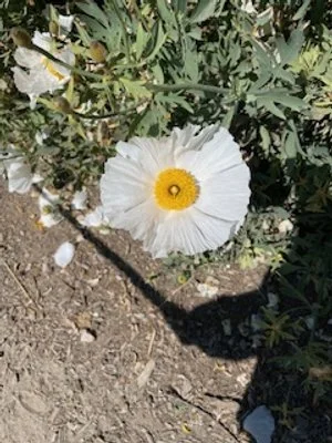 I celebrated by trying to take notice of my surroundings and what’s going on in my interior life as well. I tried to photograph the flowers that bloom outside of our well kept gardens. In the field next to the property wild radish flash yellow in the tall grass and arsenic is scattered throughout the fields. Poppies lay down a sweet kind of overripe smell along side the trail and three days ago I saw a skunk lope across the trail in front of me. At first I wasn’t sure it was a skunk, all I saw was a squarish body and a bushy tail. But when I came to the spot where the animal disappeared the sour smell was intense and I knew I had seen a skunk. There are tons of birds to be seen from buzzards gliding the thermals in the hills, to tiny nut hatch-ish types hiding just above the mole hills in the brush. In the middle there are ravens and crows and Jays and even a paragrin or two. Two days ago a long snake was sunning itself in the middle of our street and a group of neighbors got together to haze it out of the way of traffic, explaining to a small child that it was a “good snake, that we like to have around” because it ate gophers.